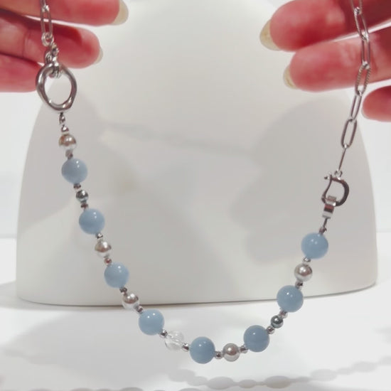 Cloud Angel Convertible Necklace | Angelite x Swarovski Pearls